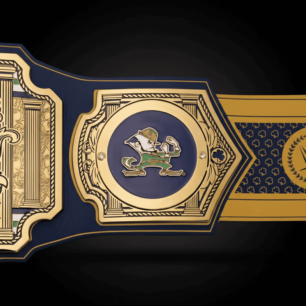 - Inspired by WWE Legacy Championship design with Notre Dame Fighting Irish customization