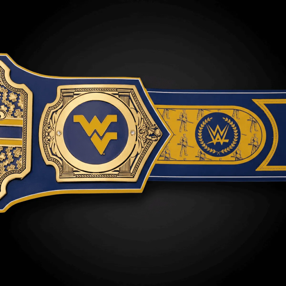 This WWE Legacy Title Belt stands out because of its unique college-inspired design and connection to both wrestling and West Virginia Mountaineers pride. While many belts follow standard WWE styles, this piece combines sports fandom, prestige, and collectible appeal. It is a strong option for buyers searching for a WWE Legacy belt, West Virginia Mountaineers championship collectible, or a custom fan memorabilia item with bold display presence.